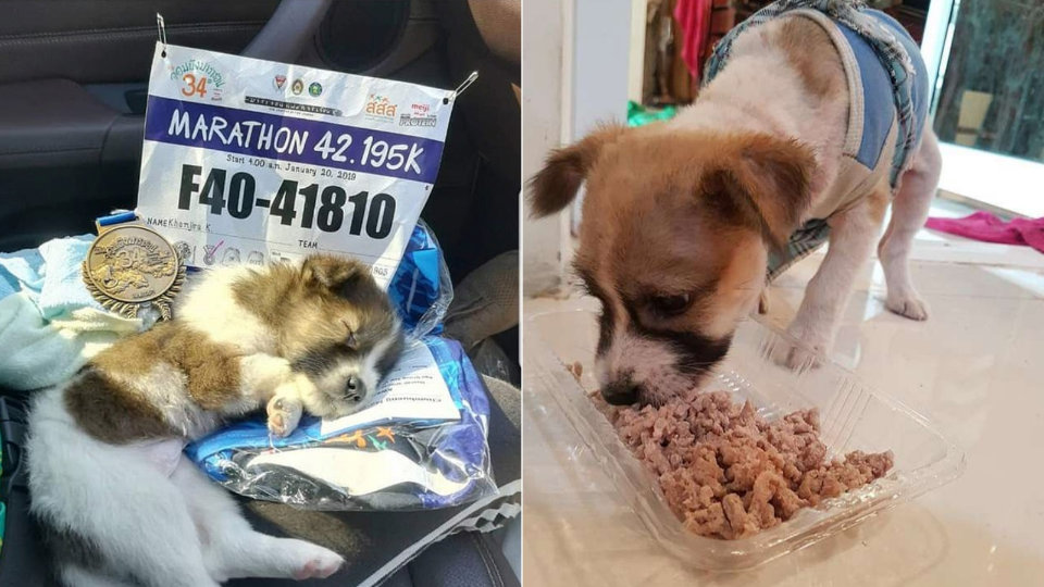 Khemjira tried to find the owner of the puppy when she crossed the finish line but without success. She took him home and appealed again to the owner to come forward, but has not had any contact.