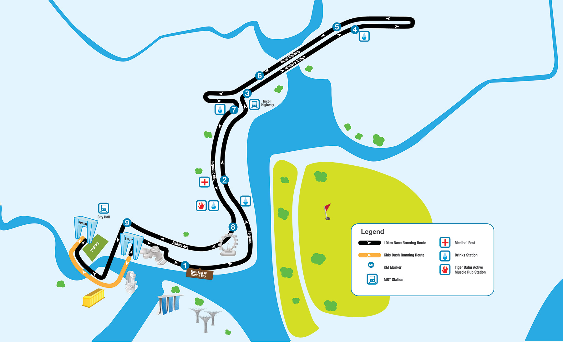 Additionally, the Marathon and 10km participants can enjoy a more visible path along the Republic Boulevard – Raffles Ave – Esplanade Drive stretch – until the final 500m, where the runners of all three distance categories will merge just before Anderson Bridge, for their final journey to the finish line.