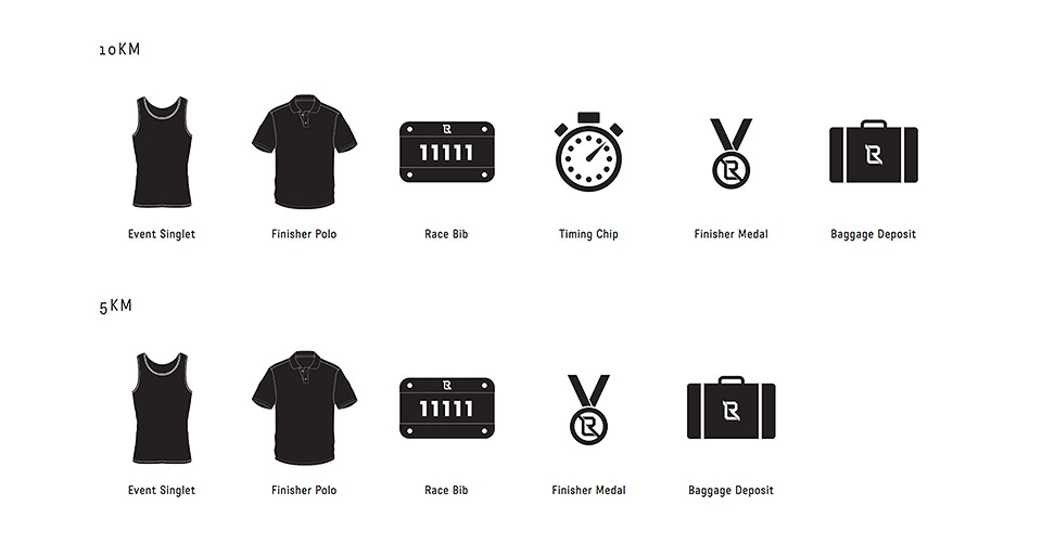 All race participants will be offered entitlements including an event singlet, race bib and a finisher medal. 10km participants will receive additional perks such as a finisher polo tee and timing chip.