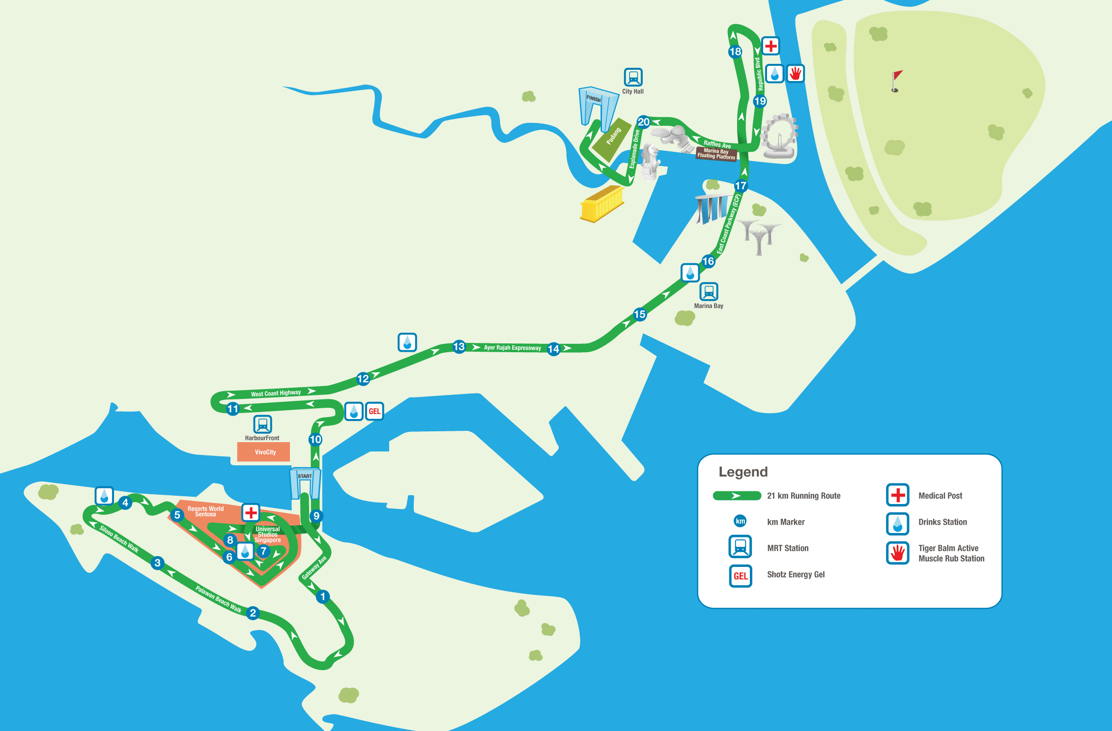 - Half Marathon runners will see no change with baggage deposit at Sentosa Gateway