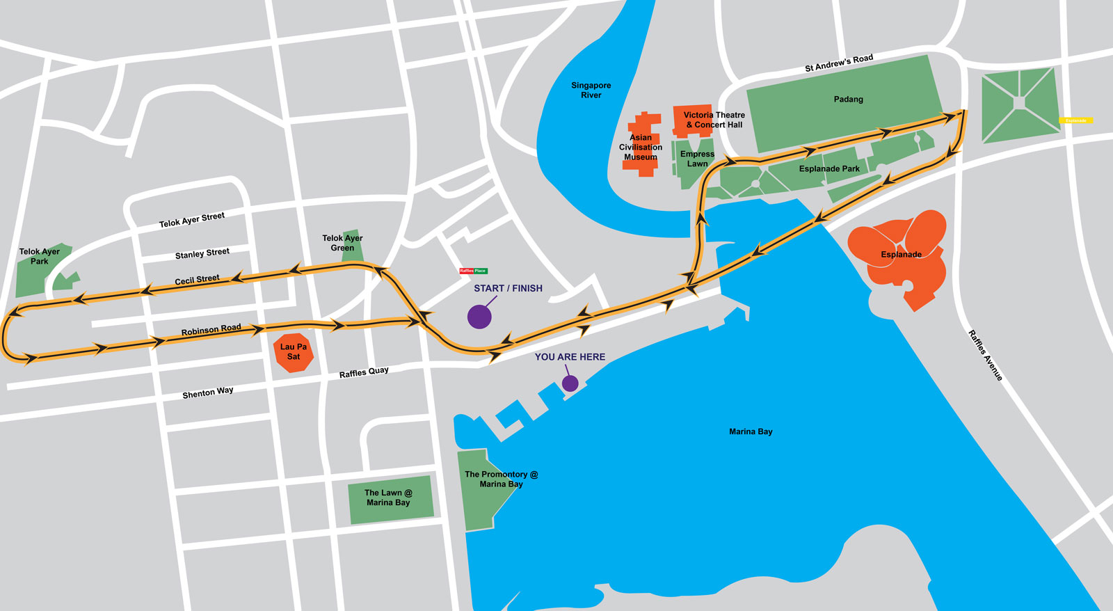 The registration booth will be at Clifford Square, the wooden deck beside Fullerton Bay Hotel. Bags can be left at the registration area however, please ensure you do not leave any valuables or personal belongings inside.