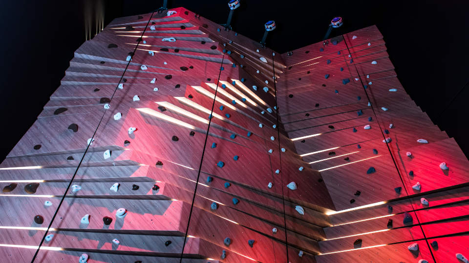 With automatic belaying lines that allow for a total of four climbers to make their ascent at any one time and varying levels of difficulty to vex even the most seasoned climber, the climbing wall adds an engaging and interactive element to a member’s workout.