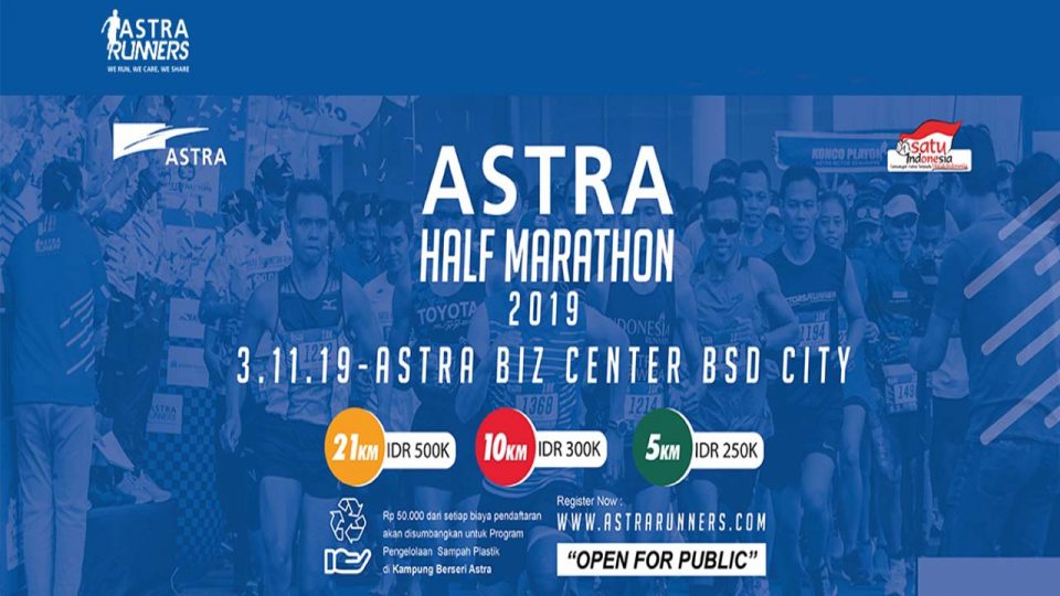 Di ulang tahunnya yang ke-6, komunitas Astra Runners mengadakan ASTRA HALF MARATHON yang akan diadakan di Astra Biz Center BSD City Minggu, 03 Nov 2019 dengan tema #InspiringMOVE