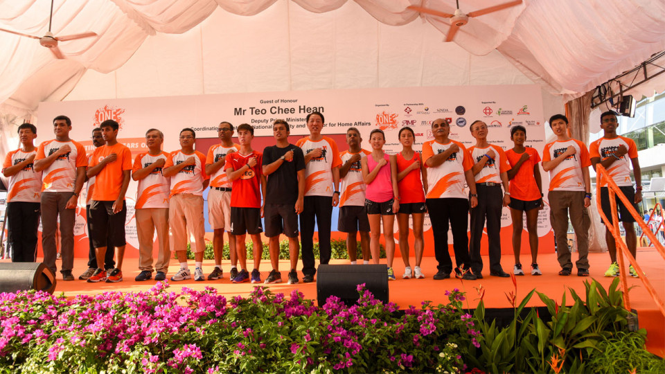 For the first time, Team Singapore athletes came on board the Orange Ribbon Run as Ambassadors. They include Singapore’s former Olympian, Mr. C. Kunalan, and SEA Games 2015 athletes Raviin Jumar, Neo Jie Shi, Rachel See, and Renuka Sathianathan. Signifying unity and harmony, C. Kunalan led the recital of the National Pledge together with DPM Teo, community leaders, Orange Ribbon Ambassadors and participants.