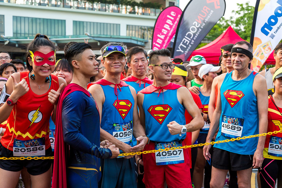 More than 5,000 runners turned up at Sentosa’s Interim Carpark, enthusiastically dressed in the colours and gears of their favourite superheroes. Once the 5 km race flagged off at 8:00 a.m. sharp, the superheroes’ representatives – a.k.a. participants – dashed neck and neck, all but to bring honour and glory to their teams.