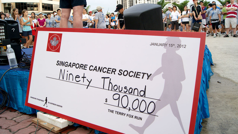 Organised by the Canadian Association of Singapore in conjunction with the Singapore Cancer Society (SCS), The Terry Fox Run 2012 saw over 2,700 supporters – an increase from 1,200 in 2011 – turn up in full force at Playground@Big Splash to honour the man’s legacy. (The event made a comeback in 2011 following a long hiatus.) It’s rather reassuring to know that the spirit of generosity is still very much alive in funding cancer research, evident by the S$90,000 cheque presented to SCS by His Excellency, David Sevigny, Canadian Ambassador to Singapore.