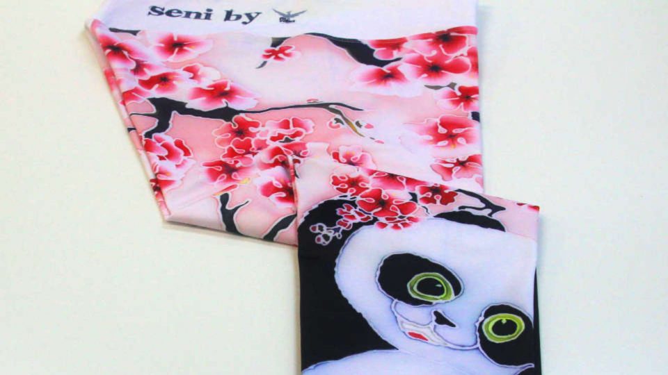 The leggings come in a bright powder pink colour and feature two baby pandas playing under the Sakura tree, which are meticulously hand-drawn and painted by Malaysian artists with more than 35 years of experience, using the traditional batik painting method.