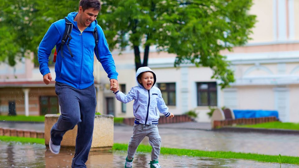 Jump in as many puddles as you like just for fun — particularly if you can soak an innocent passer-by trying to get to his car in a downpour because he’s not wearing a raincoat.